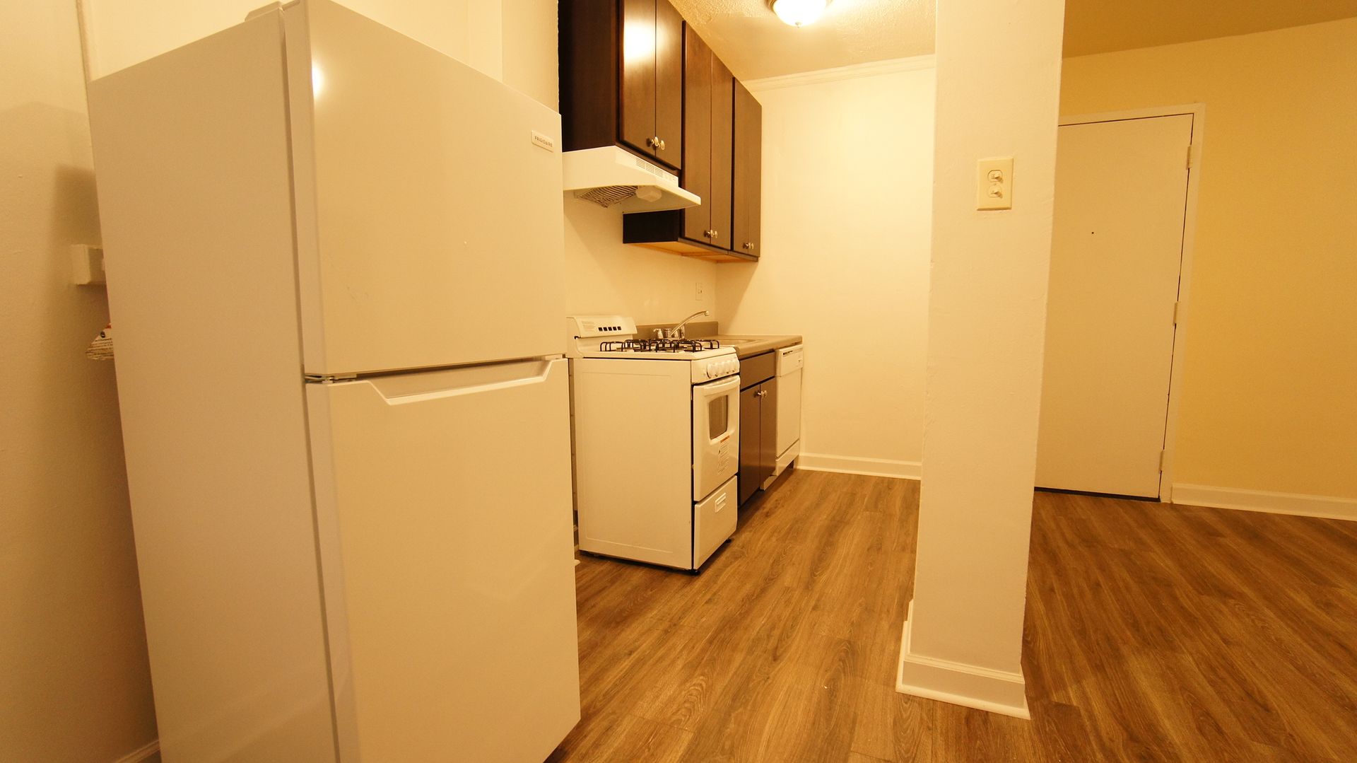 Features here include separate kitchen and dining area, new kitchen, an ample closet and lots of windows for natural light.